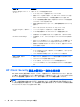 設定 [設定]ビューで管理者は、HP Device Access Manager によって制御されるアクセス権が設定された ドライブを表示および変更できます。 注記: ドライブ文字の一覧が構成されている場合は、HP Device Access Manager が有効になって いる必要があります(46 ページの「[システム]ビュー」を参照してください) 。 管理されないデバイス クラス HP Device Access Manager では、以下のデバイス クラスは管理されません。 ● ● ● 入出力デバイス ◦ CD-ROM ◦ ディスク ドライブ ◦ フロッピー ディスク コントローラー(FDC) ◦ ハード ディスク コントローラー(HDC) ◦ ヒューマン インターフェイス デバイス(HID)クラス ◦ 赤外線ヒューマン インターフェイス デバイス ◦ マウス ◦ マルチコネクタ シリアル ◦ キーボード ◦ プラグ アンド プレイ(PnP)プリンター ◦ プリンター ◦ プリンター アップグレード 電源 ◦ Advanced Power Man