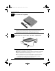 592780-261.book Page 2 Thursday, January 14, 2010 12:55 PM Основна конфигурация 2 Поставяне на батерията ПРЕДУПРЕЖДЕНИЕ! За да намалите потенциалните проблеми с безопасността, Å използвайте само променливотоковия адаптер или батерията към компютъра, резервен променливотоков адаптер или батерия от HP или съвместим променливотоков адаптер или батерия, закупени допълнително от HP.