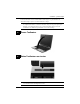 Installation : première étape 2 Insérez la batterie ! Pour réduire les risques liés à la sécurité, utilisez uniquement Å AVERTISSEMENT l’adaptateur secteur ou la batterie fourni avec l’ordinateur, un adaptateur secteur ou une batterie de rechange fourni par HP ou un adaptateur secteur ou une batterie acheté en tant qu’accessoire auprès de HP.
