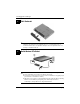 Grundläggande inställningar 1 Packa upp lådan ✎ Datorns färg, funktioner och tillval kan variera. Komponent Komponent 1 Dator 4 Lands- eller regionspecifik adapter till modemkabel (endast vissa modeller) 2 Nätadapter 5 Strömkabel 3 Batteri 6 Modemkabel (endast vissa modeller) ✎ Komma igång Modemkablar, batterier och strömkablar varierar i utseende beroende på land/region.