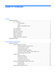 Table of contents 1 Features Identifying hardware ............................................................................................................................. 1 Top components .................................................................................................................. 1 Pointing devices .................................................................................................. 1 Lights ............................................................................