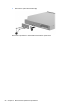 3. Grasp the mylar tab on the hard drive and slide the hard drive (3) to the left to disconnect it from