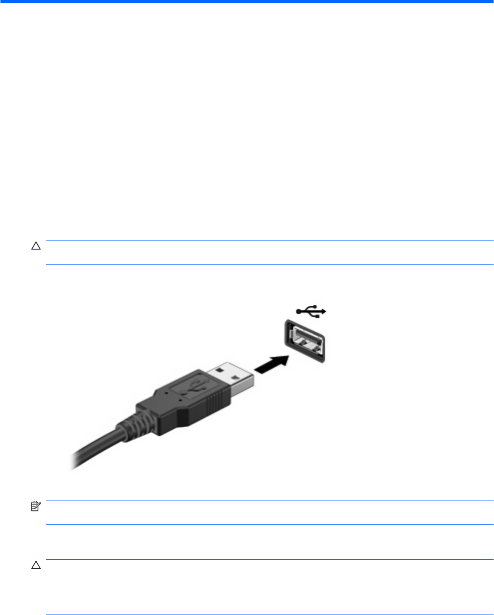 FORSIKTIG: For å unngå skade på en USB-kontakt må du ikke bruke makt når du kobler til en USB-
