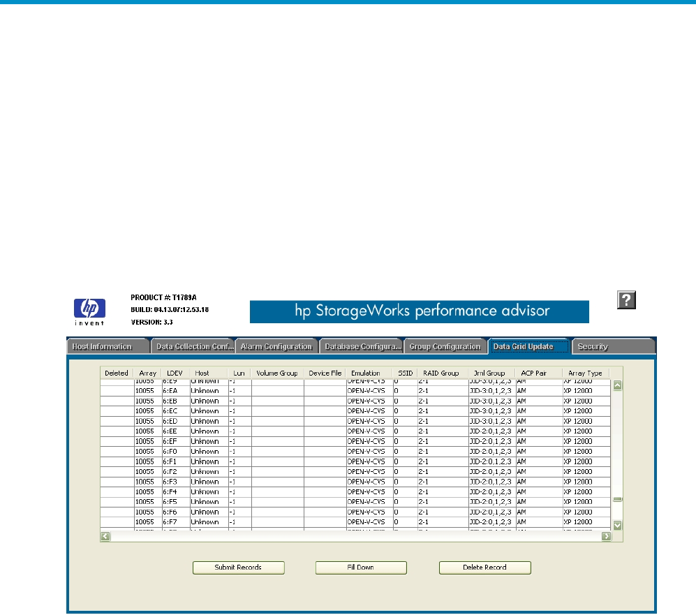 The Data G rid Update screen is located in the Configuration tab in Performance Advisor XP (PA XP) as