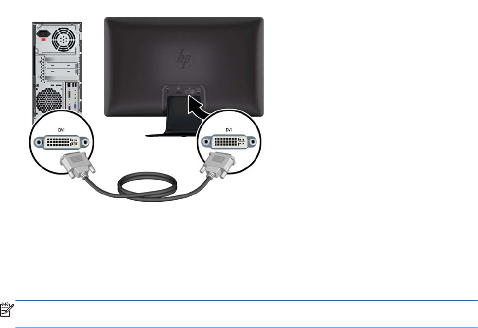 Figura 3-4 Conexión del cable DVI-D (incluye cable sólo en algunos modelos)