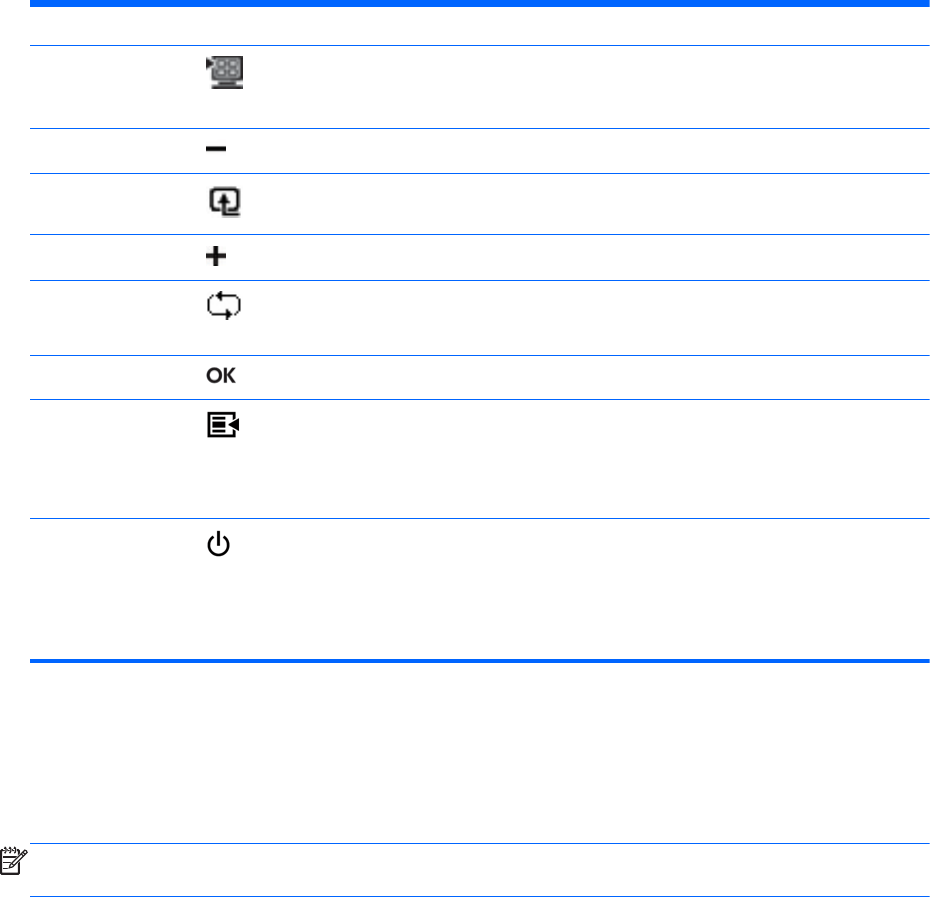 NOTA: El menú en pantalla (OSD) sólo está disponible, si por lo menos está seleccionada un