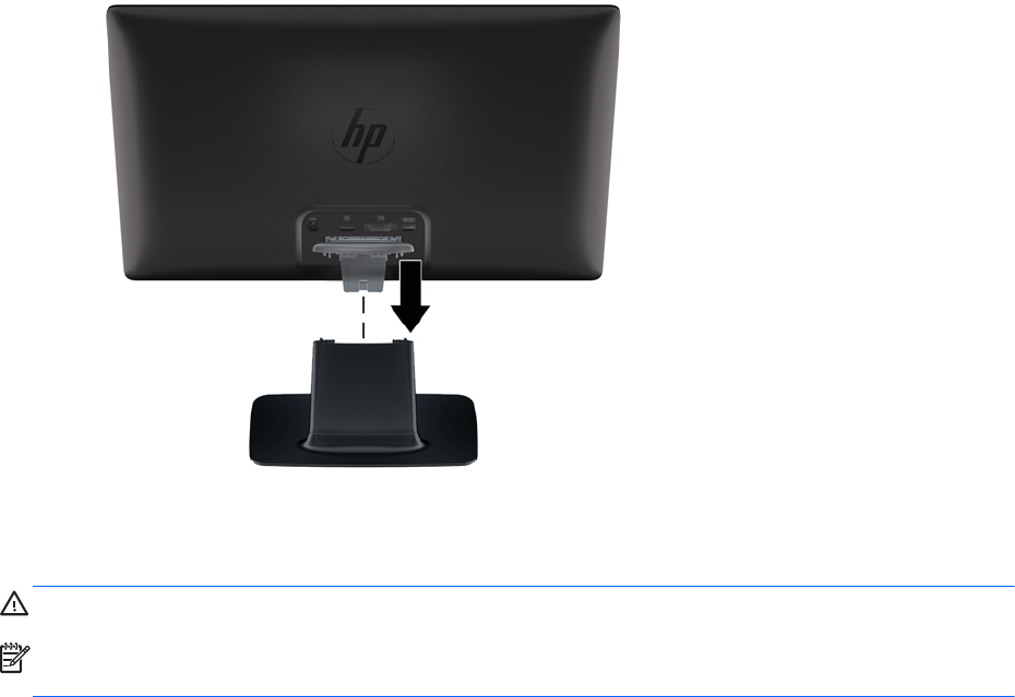 3. Zasuňte držák pantu na monitoru do otvoru v horní části podstavce. Po úplném zasunutí zaklapne