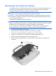 a. Solte os clipes de retenção (1) de cada lado do módulo de memória.