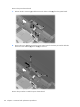 2. Disconnect the speaker cable from the connector (2) on the system board.