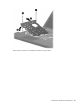 1. Remove the two PM2.5x6.0 screws (1) that secure the speakers to the top cover.