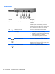 (6) RJ-11-modemconnector Hierop kunt u een optionele modemkabel aansluiten.