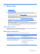 Índice A alimentación, identificación del botón 6 alimentación, identificación del conector 10 alimentación, identificación del indicador luminoso 5 alimentación de entrada 32 altavoz, identificación 8 Antena WLAN, identificación 11 Área del TouchPad, identificación 4 auriculares (salida de audio), conector 9 B batería, identificación del compartimento 12 batería, identificación del indicador luminoso 10 batería, sustitución 20 bloq num en un teclado numérico externo 17 botones alimentación 6 Botón izquierd