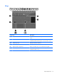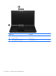 (1) Security cable slot Attaches an optional security cable to the computer.