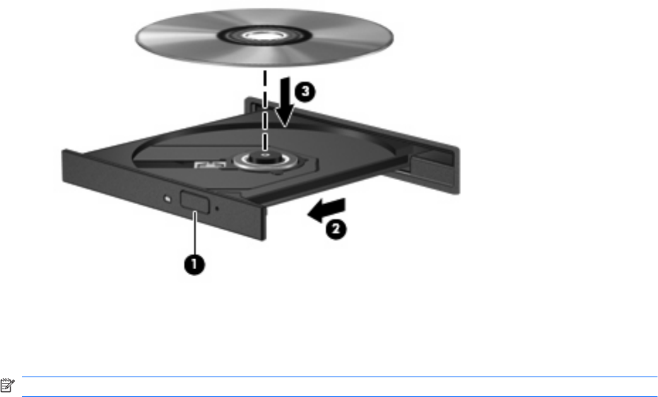 1. Pritisnite gumb za otvaranje (1) koji se nalazi na okviru pogona kako biste otvorili ladicu diska, a