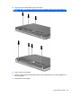 6. Helyezze a billentyűzetet felfordítva a számítógép kéztámaszára (1).