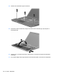 6. Helyezze a billentyűzetet felfordítva a számítógép kéztámaszára (1).