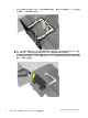 拆除电脑支架之前 为避免人身伤害和设备损坏,在拆开 HP TouchSmart PC 之前,请务必按顺序完成下列步骤: 1. 卸下 HP TouchSmart PC 上的所有介质和外接设备(例如,任何 CD、DVD、存储卡、USB 设备 或外接硬盘)。 注意: 静电会损坏 HP TouchSmart PC 或选购设备的电子组件。 确保通过快速接触金属接地设 备,释放您身体所带的静电。 2. 单击 Windows 开始按钮,然后单击关机。 警告! 为降低电击或高温表面造成人身伤害的风险,请先将电源线从墙壁插座中拔出,并等到内 部系统组件冷却之后再用手接触它们。 3. 在系统完全关机后,从 HP TouchSmart PC 背面拔下电源适配器。 4. 断开 HP TouchSmart PC 背面和侧面连接的所有其他电缆。 拆除电脑支架 完成前面的步骤后,在将 VESA 适配器面板安装到电脑背面之前,先拆除电脑支架。 1.