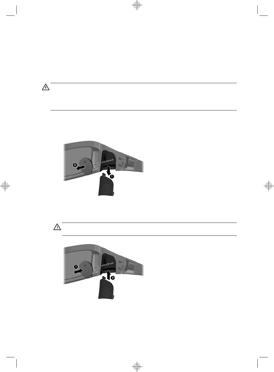 1. Dorong penutup kompartemen baterai (1) ke bawah, kemudian keluarkan