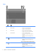(1) Luz do TouchPad ● Âmbar: O TouchPad está desativado.