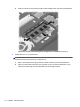 b. Fatta tag i kanten på minnesmodulen (2) och dra försiktigt ut den från minnesmodulplatsen.