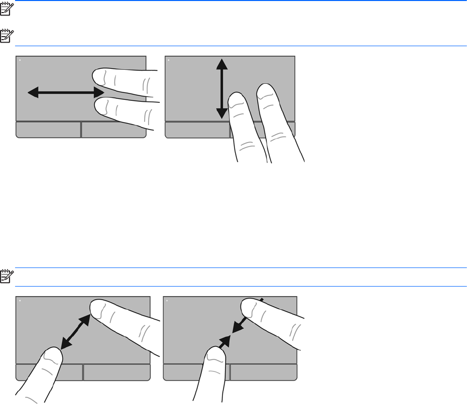 將兩根分開的手指放在觸控板上,然後併攏手指,如此即可縮小物件。