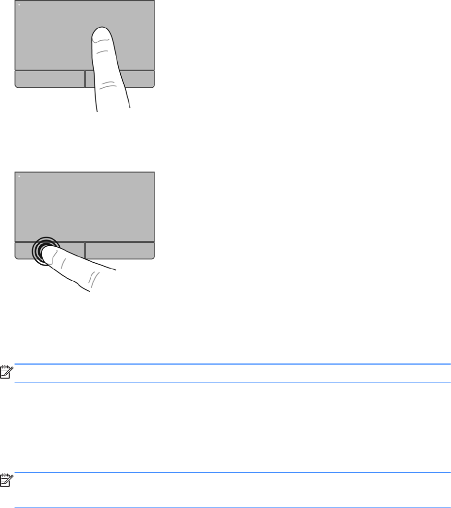 TouchPad'en understøtter flere forskellige bevægelser. Anbring to fingre på TouchPad'en samtidig for