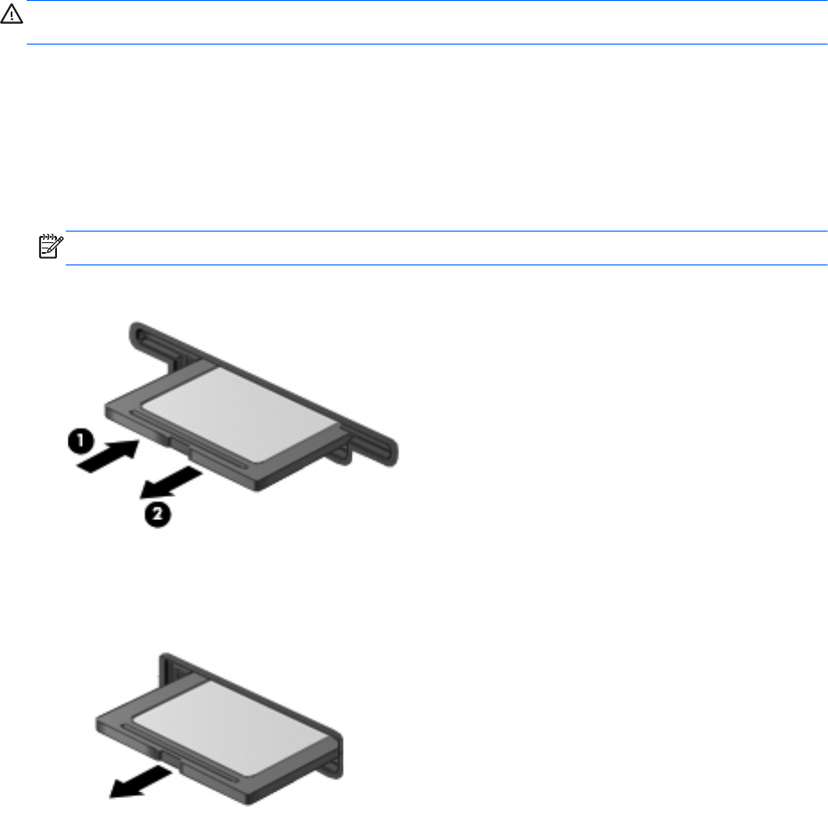 3. Tryk ind på kortet (1), og tag derefter kortet ud af slotten (2).