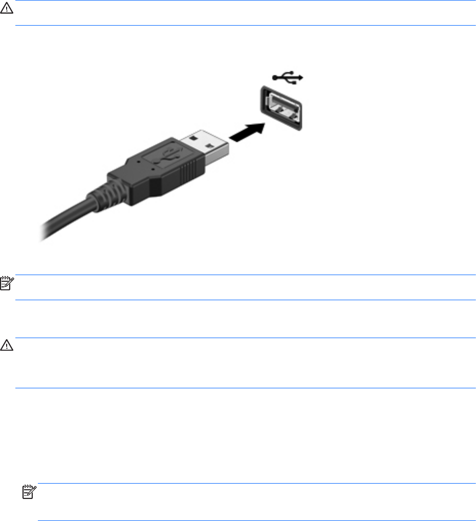 FORSIGTIG: Anvend minimal kraft til at tilslutte en USB-enhed for at undgå at beskadige USB-