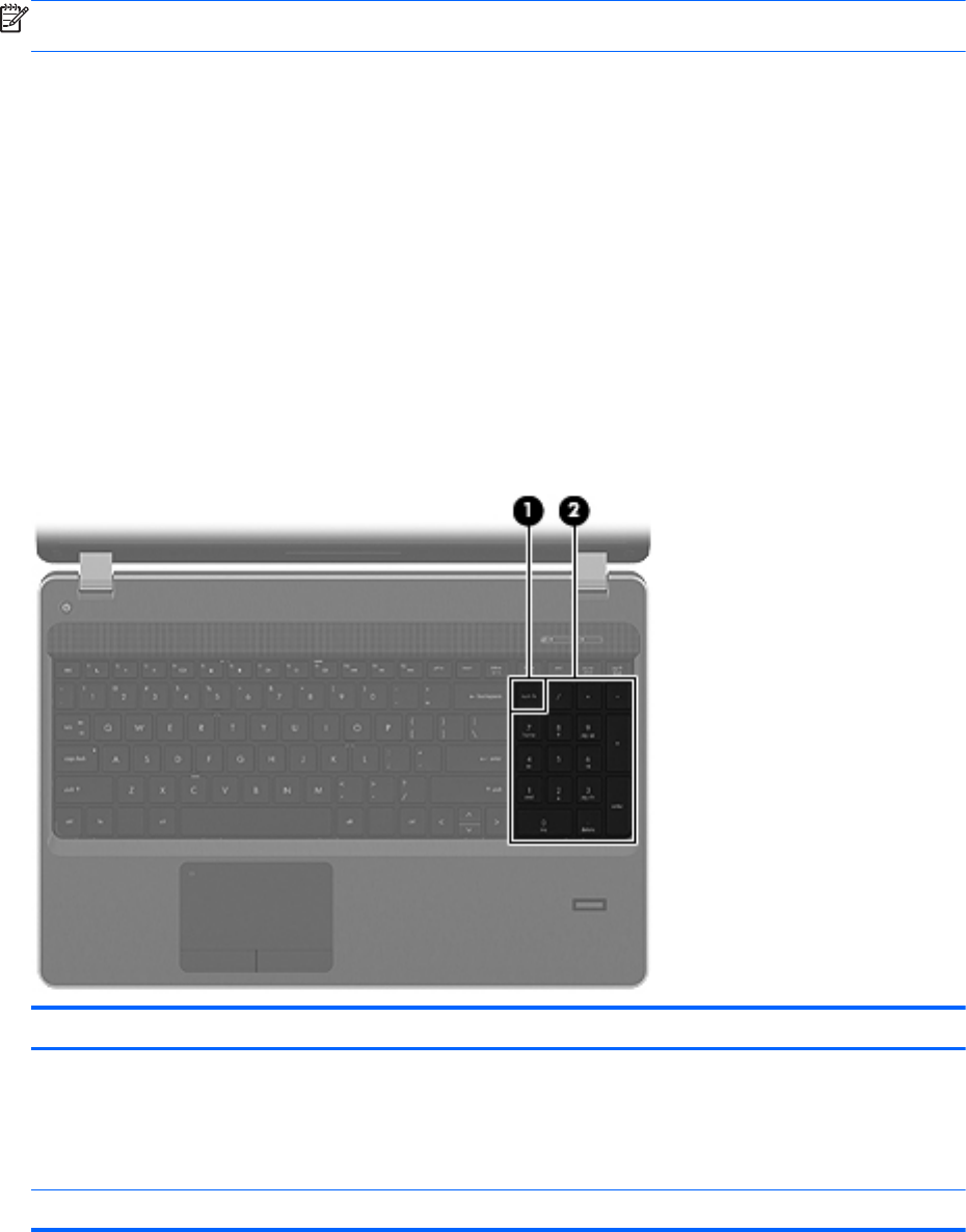 (1) num lk -näppäin Vaihtaa kiinteän numeronäppäimistön navigointitoimintojen ja