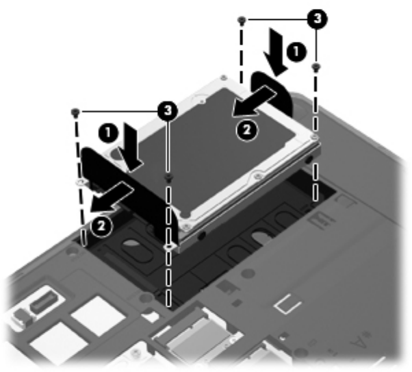 3. Aseta kiintolevyn neljä ruuvia (3) paikoilleen.