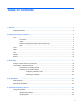 Table of contents 1 Welcome .......................................................................................................................................................... 1 Finding information ............................................................................................................................... 2 2 Getting to know your computer ..................................................................................................................... 4 Top ....................