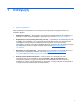 1 Εισαγωγή ● Εύρεση πληροφοριών Αφού εγκαταστήσετε και δηλώσετε τον υπολογιστή, είναι σημαντικό να πραγματοποιήσετε τα παρακάτω βήματα: ● Σύνδεση στο Internet — Δημιουργήστε ένα ενσύρματο ή ασύρματο δίκτυο για πρόσβαση στο Internet. Για περισσότερες πληροφορίες, ανατρέξτε στην ενότητα Δικτύωση στη σελίδα 17. ● Ενημέρωση του λογισμικού προστασίας από ιούς — Προστατέψτε τον υπολογιστή σας από τις βλάβες που προκαλούν οι ιοί.