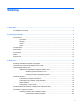 Kazalo A administratorska lozinka stvaranje 70 unos 70 upravljanje 70 akcijske tipke glasnoća 32 antene bežičnih uređaja, prepoznavanje 13 audiofunkcije, provjeravanje audioznačajke 31 brojčane tipkovnice, prepoznavanje 25, 26 C Computer Setup kretanje i odabir 77 lozinke postavljene u 69 vraćanje tvorničkih postavki 78 33 B baterija napajanje 39 niske razine napunjenosti baterije 43 odlaganje u otpad 45 pohranjivanje 44 punjenje 42 štednja energije 44 temperatura 44 uklanjanje 41 umetanje 41 vijek traja