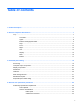 Table of contents 1 Product description ........................................................................................................................................ 1 2 External component identification ................................................................................................................ 7 Top ....................................................................................................................................................... 7 TouchPad ..............
