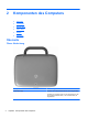 2 Komponenten des Computers ● Oberseite ● Vorderseite ● Rechte Seite ● Linke Seite ● Display ● Unterseite Oberseite Obere Abdeckung Komponente Beschreibung Netzwerkanzeige Leuchtet nicht: Alle Netzwerkfunktionen sind ausgeschaltet. Leuchtet: Der Computer ist an ein LAN angeschlossen, oder ein integriertes Wireless-Gerät, z. B. ein WLAN-Gerät, ist eingeschaltet.