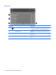 2 Bli kjent med datamaskinen ● Oversiden ● Forsiden ● Høyre side ● Venstre side ● Skjerm ● Undersiden Oversiden Toppdeksel Komponent Beskrivelse Nettverkslampe Av: Alle nettverksfunksjoner er av. På: Datamaskinen er koblet til et kablet nettverk eller en integrert trådløs enhet, for eksempel en enhet for trådløs lokalnettverk (WLAN), er på.