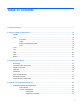 Table of contents 1 Product description ........................................................................................................................................ 1 2 External component identification .............................................................................................................. 10 Display ................................................................................................................................................ 10 Top ......................