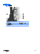 拆下側邊 I/O 外蓋 若要拆下側邊 I/O 外蓋,請由中央拉出外蓋 (1),並轉開外蓋 (2)。 圖示 2-3 拆下側邊 I/O 外蓋 裝回側邊 I/O 外蓋 若要裝回側邊 I/O 外蓋,請將側邊 I/O 外蓋上的鎖扣滑入較大磁碟機外蓋上的插槽 (1),並旋轉外蓋使其 卡入定位 (2)。 圖示 2-4 裝回側邊 I/O 外蓋 ZHTW 拆下側邊 I/O 外蓋 7