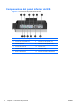Componentes del panel lateral Figura 1-3 Conectores laterales ESWW 1 Unidad de disco duro primaria 4 Conector de micrófono (rosado) 2 Compartimiento para unidad de disco duro secundaria 5 Conector USB 3 Conector de salida de línea de audio (verde) Componentes del panel lateral 5