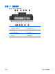 底部 I/O 面板组件 图 1-2 ZHCN 底部 I/O 面板连接器 1 Kensington 锁槽 7 PS/2 键盘接口 2 串行连接器(COM2,5V) 8 串行连接器(COM1,5V) 3 并行连接器 9 串行连接器(COM3,12V) 4 RJ-45 网络连接器 10 VGA 连接器 5 24V USB + 电源连接器 11 通用串行总线 (USB) 接口 6 电源按钮 12 电源线连接器 底部 I/O 面板组件 3