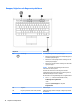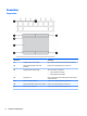 (5) Vänster knapp på styrplattan Fungerar som vänsterknappen på en extern mus.