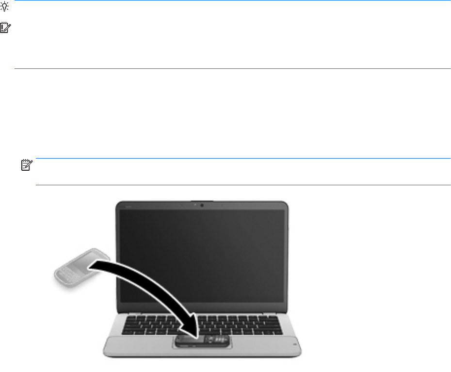 POZNÁMKA: NFC anténa na vašom počítači sa nachádza pod zariadenia TouchPad. Ak chcete zistiť, kde