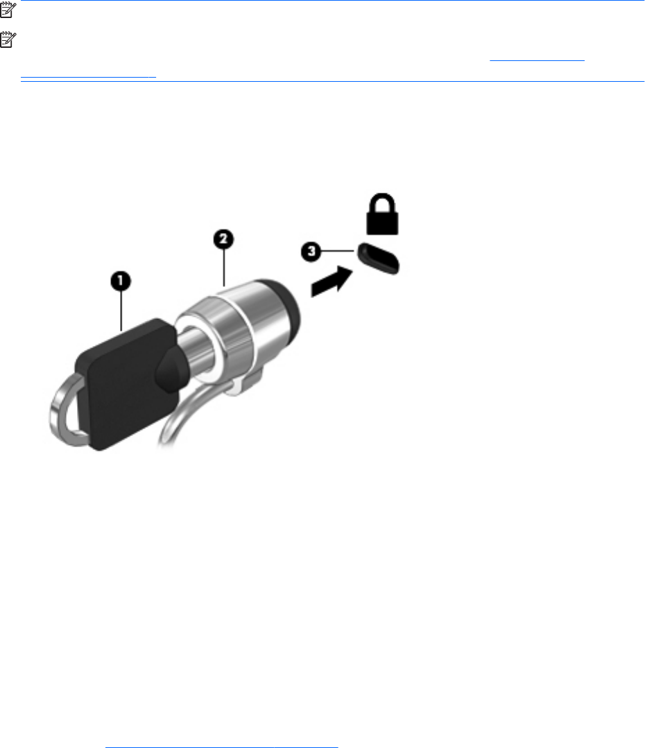 3. Vložte lankový zámok do otvoru pre lankový zámok na počítači (3) a potom ho uzamknite pomocou