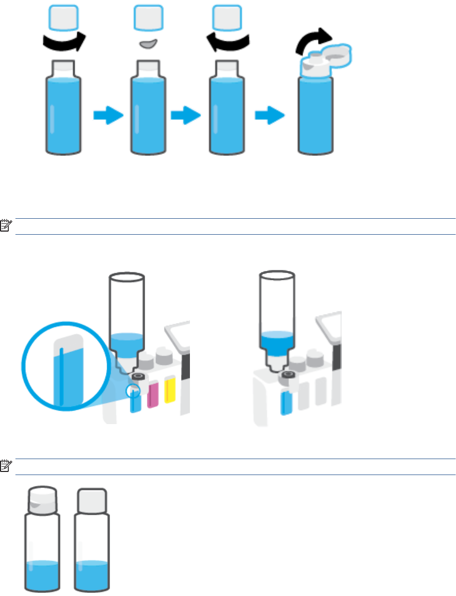 ● Äratõmmatava korgiga pudelid: keerake tindipudelilt kork maha, eemaldage pudelilt tihend,