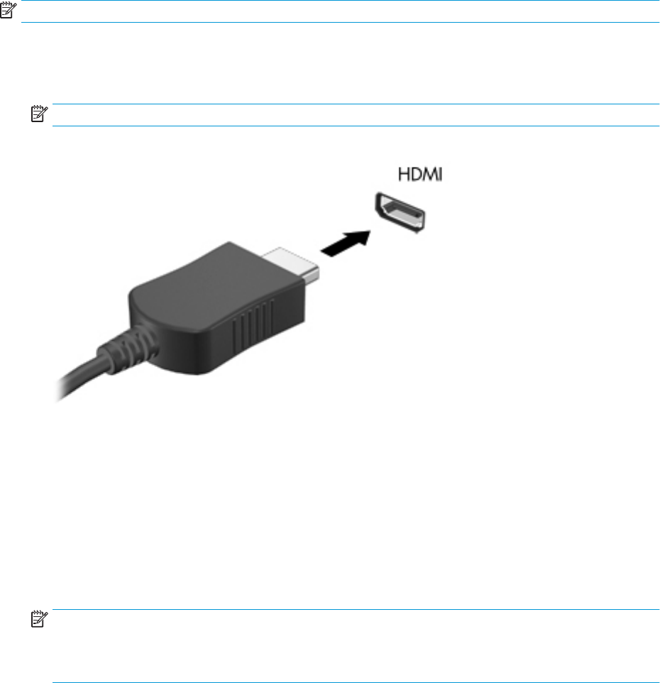 NAPOMENA: Da biste povezali HDMI uređaj s računarom, trebate HDMI kabl koji se prodaje zasebno.