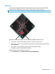 Edessä olevat osat Komponentti Kuvaus (1) Luo ainutlaatuisia valaistustehosteita tietokoneella. Valaistut värialueet HUOMAUTUS: (2) Tuuletusaukot (2) Lisätietoja on kohdassa Värialueet sivulla 3. Tuuletusaukkojen kautta ilma kiertää tietokoneen sisällä ja jäähdyttää tietokoneen sisäisiä osia. HUOMAUTUS: Automaattisesti käynnistyvä tietokoneen tuuletin jäähdyttää tietokoneen sisäisiä osia ja estää tietokoneen ylikuumenemisen.