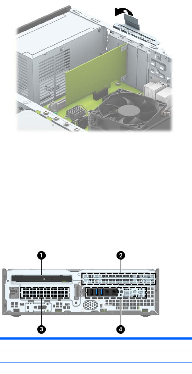 13. Pastumkite lizdo dangtelio laikymo skląstį į vietą ir užfiksuokite išplėtimo kortą.