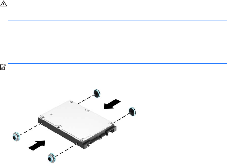 Dėdami naują diskų įrenginį, išsukite keturis montavimo varžtus iš seno diskų įrenginio ir įsukite į naują.