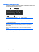 - Компоненти на лицевия панел Конфигурацията на устройствата може да варира в зависимост от модела. Някои модели имат празен панел върху отделението за тънко оптично устройство. 1 Тънко оптично устройство (допълнително) 6 Съединител за слушалки 2 USB 2.0 порт за зареждане (захранен) (черен) 7 Двупозиционен бутон за захранване 3 USB 2.0 порт (черен) 8 Индикатор за активност на твърдия диск 4 USB 3.