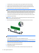 7. Buka kedua pengait soket modul memori (1), kemudian masukkan modul memori ke soket (2).